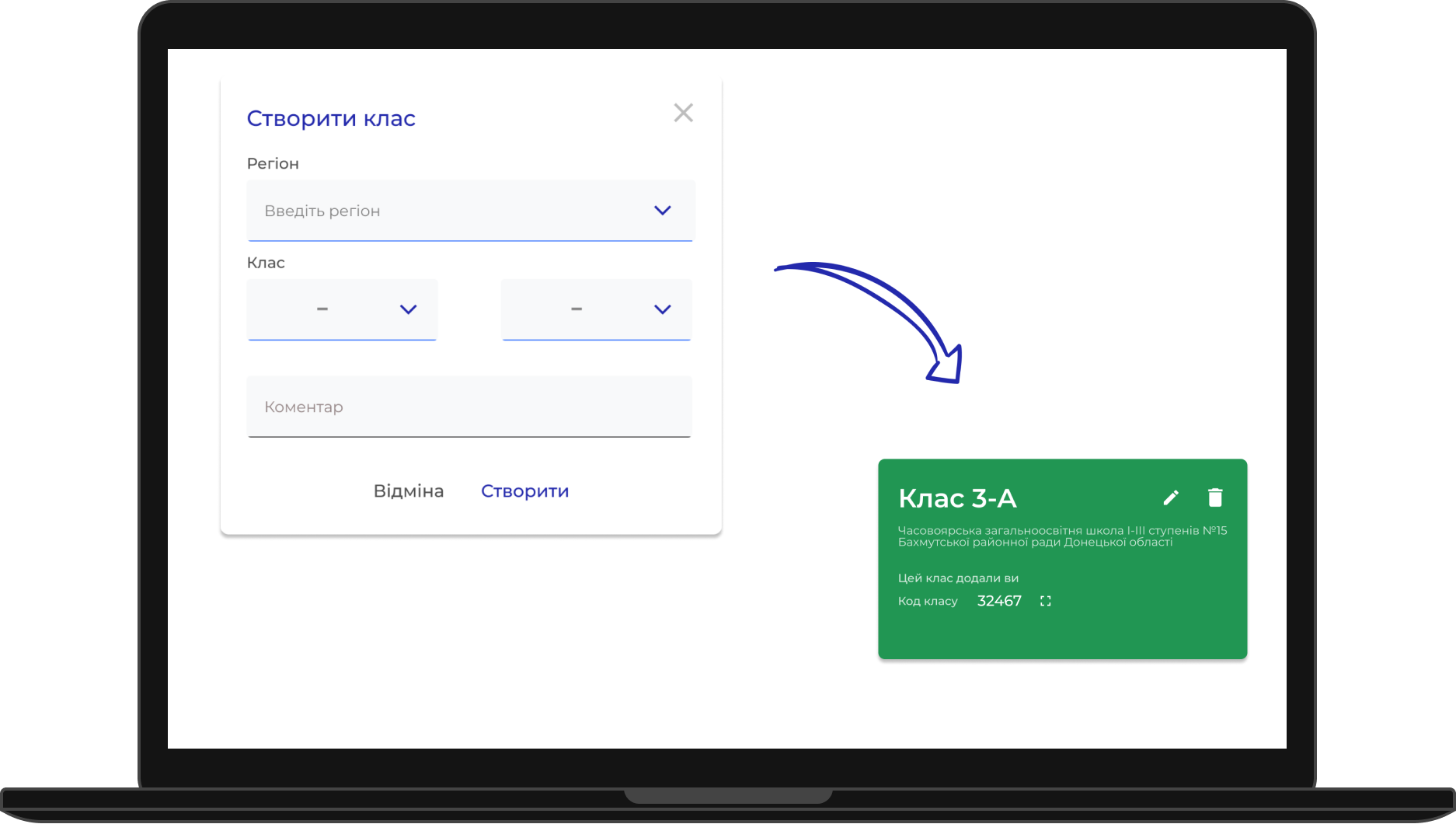 Створіть клас, якому хочете відправляти домашнє завдання. Коли клас будете створено, у вас з’явиться КОД КЛАСУ, за яким учні зможуть приєднатися до нього